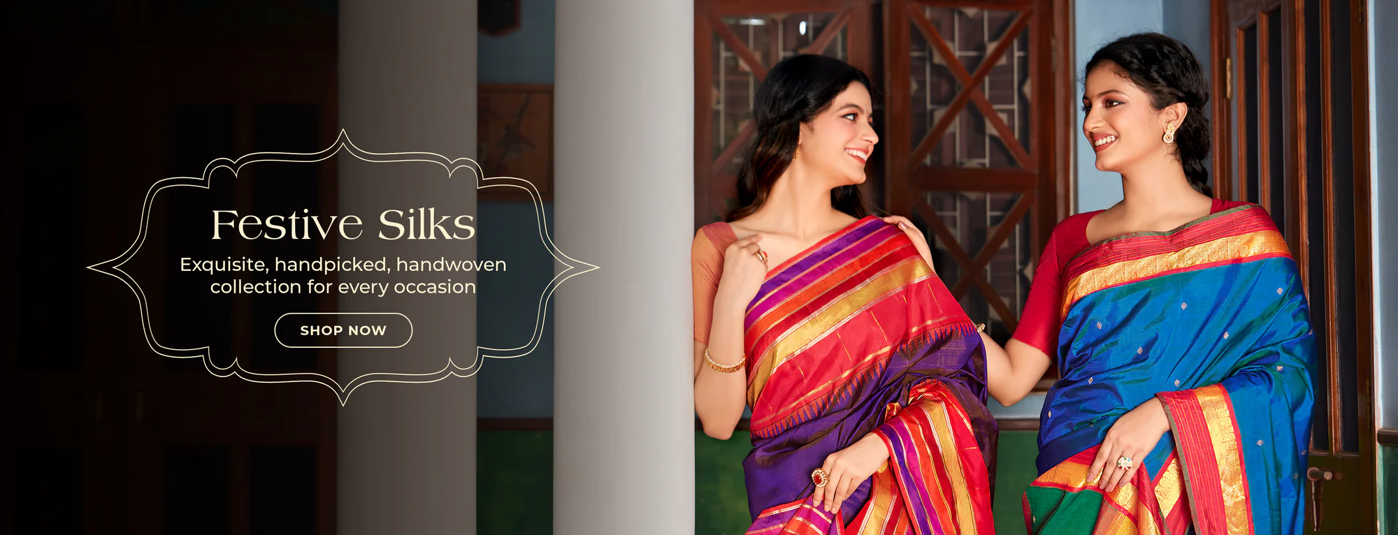 Specializing in authentic Kanchipuram handloom sarees, our collection reflects the timeless beauty of South Indian heritage.